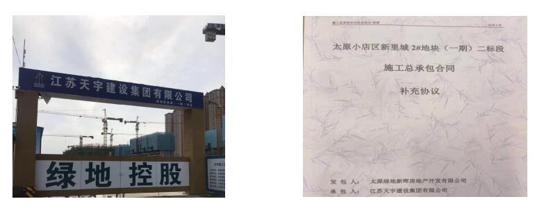 2019年7月17日,天宇集团与太原绿地控股集团签订了总建筑面积49万平方米施工总承包合同。绿地控股集团有限公司是2019年中国房地产开发企业500强全榜单及子榜单中排名第11名,是上海市国有控股特大型企业集团,实力雄厚、开发项目遍布全国。